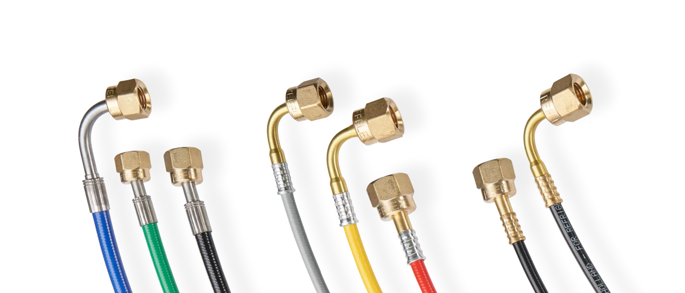 Naast de losse materialen om zelf een REFFLEX® DN-5.0 slangen te assembleren leveren we ook een gebruiksvriendelijke oplossing aan de hand van compleet voorgefabriceerde slangen. Op maat gemaakt, standaard lengtes of een specifiek door de klant opgegeven vorm en afmeting, en voorzien van een combinatie van fittingen. Denk daarbij aan rechte -, haakse fittingen met elk een 1/4” flare (7/16” UNF) of 3/8” flare (5/8” UNF) wartelmoer.